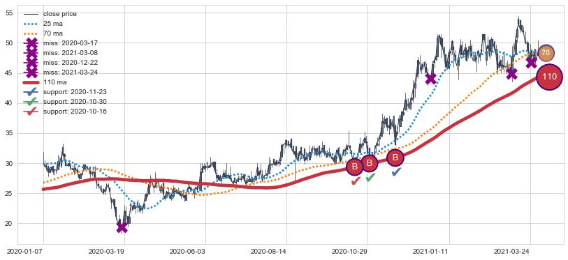 ➢ 最优均线组合共正确确认支撑阻力信号5处,正确确认率 50.00%