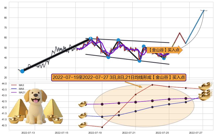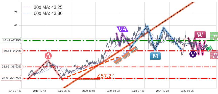 ♘ 支撑价格位40.71,可信任强度71.68%,距离最后交易2022-08-12形成的收盘价格45.20相差 -9.94%