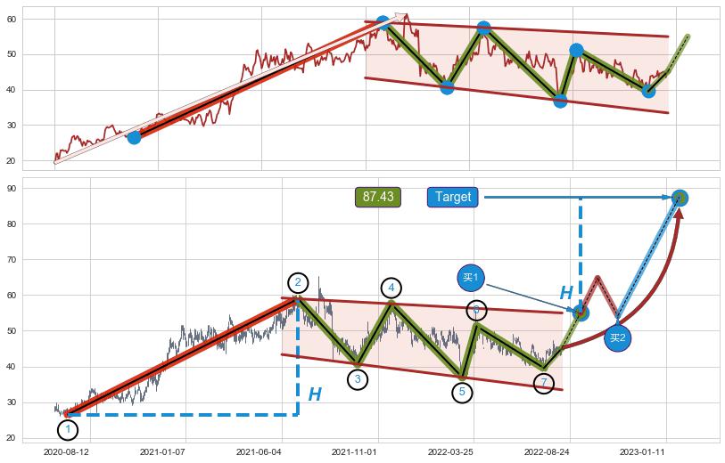 ➣ 最小中继整理涨幅→𝐇: 32.45 (𝐇旗杆的长度:旗杆起点→顶点)