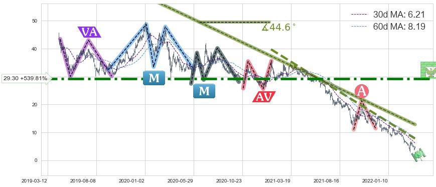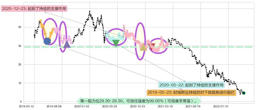 ♘ 阻力价格位29.30,可信任强度99.00%,距离最后交易2022-03-31形成的收盘价格4.58相差 +539.81%