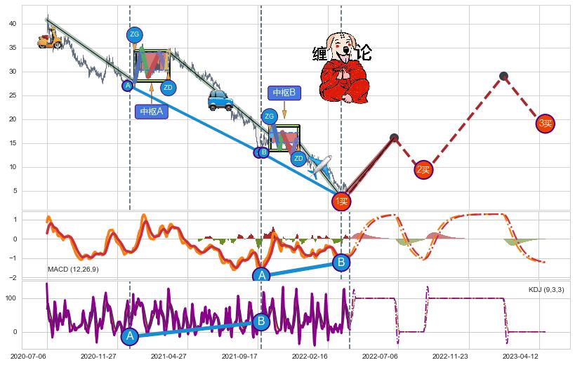 | 17 🅚:早晨之星(黎明之星) ➕ ☯️:缠论买卖点下降缠中枢AB形成后猜想拐点1买已到达,猜想后续持续拉升(均值回复) ☞ 看多信号 ⇥ 【🅚线】交织【图形】⇥ 综合量化分数: 52 | > |