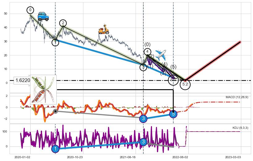 ➢ 5.1: 预测当前第5浪位置(2022-03-15, 3.670),仍然有下跌空间