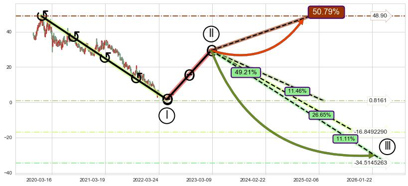➢ 高概率大级别循环下跌浪被破坏,反转向上(突破5浪起点)概率50.79%