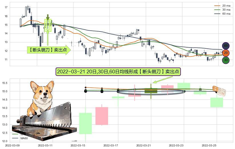 形态多维评估: ⚀ 2022-03-21日显现 20日-30日-60日均线 【断头铡刀】卖出点 看空信号,后市看跌,卖出