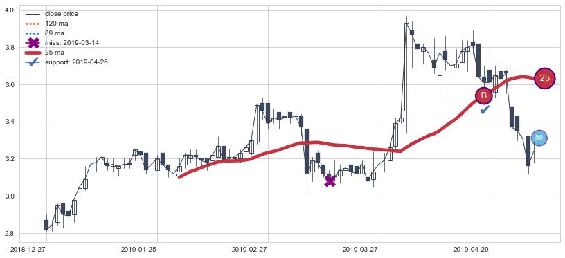 上涨趋势2018-12-27-2019-05-10,均线25确认关键支撑1处