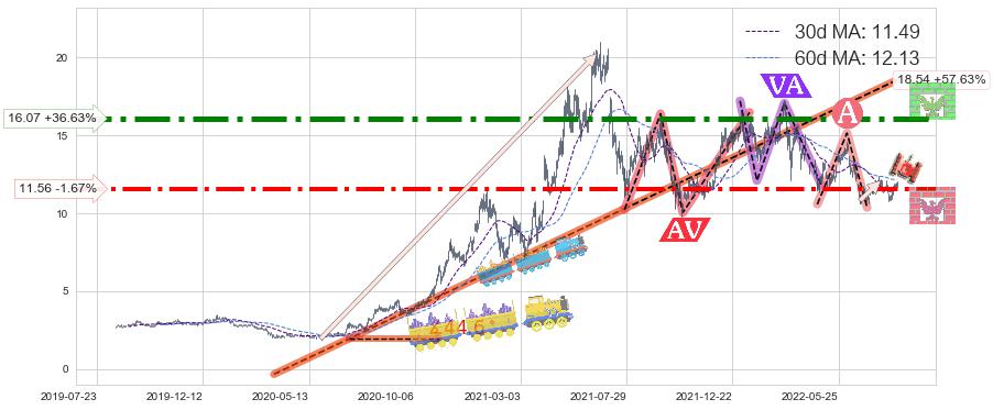 ♘ 阻力价格位16.07,可信任强度94.70%,距离最后交易2022-08-12形成的收盘价格11.76相差 +36.63%
