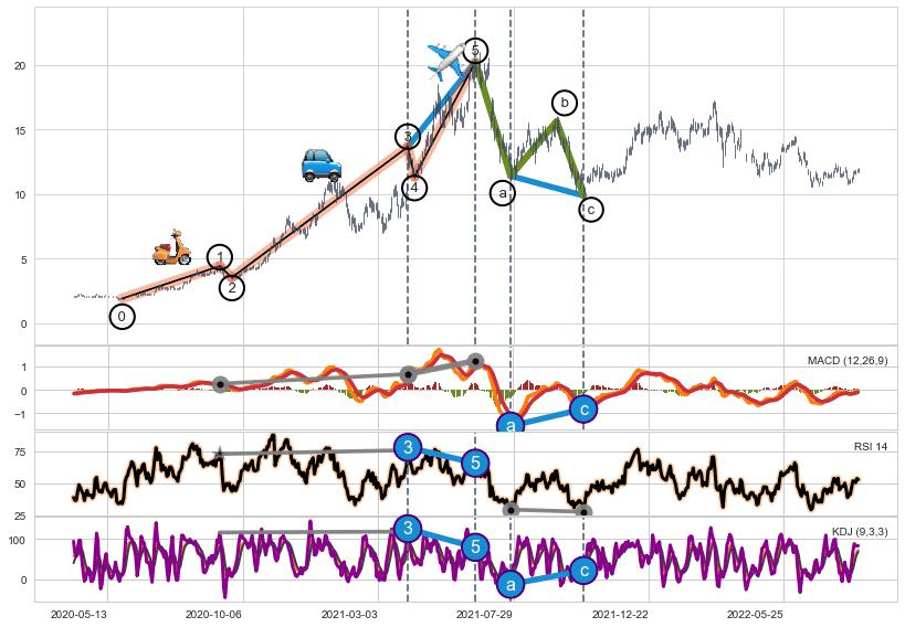 ➣ 第一, 三, 五浪上涨动能逐渐【增强变大】,趋势不断加固