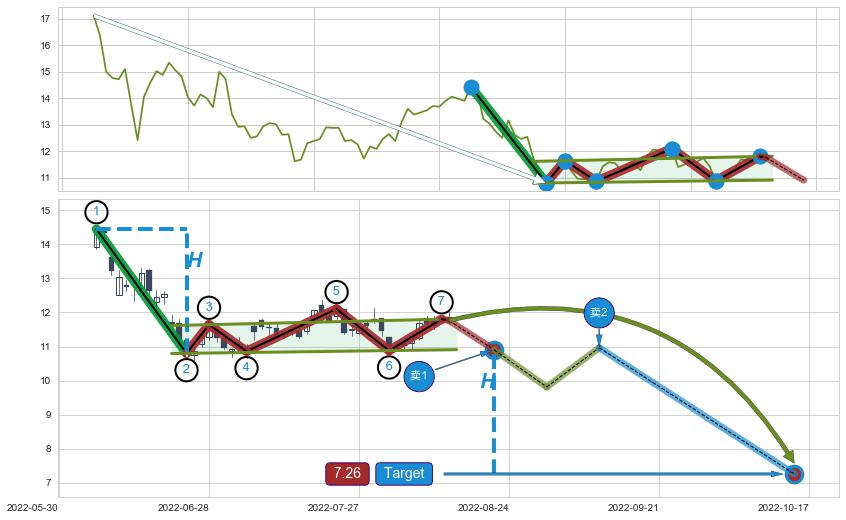 ➢ AI预测: 假定反转如期而至,第❶价格目标位置(2022-09-05, 13.21)