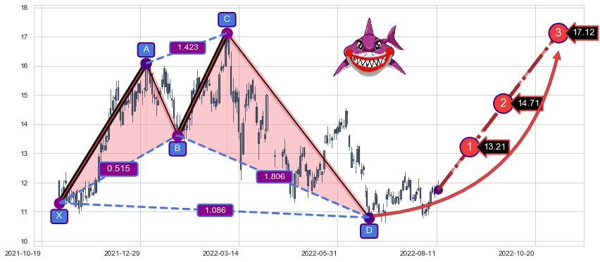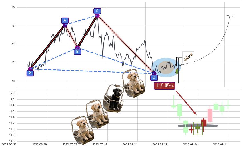 ➣ 已完成【鲨鱼】形态起点X: 2021-11-01, 终点D: 2022-06-23, 共158交易日