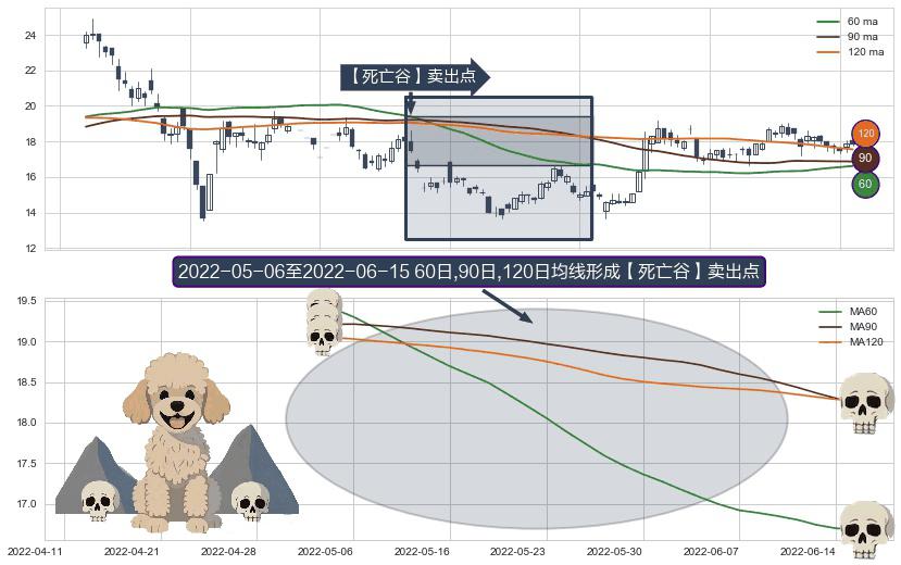 ⚀ 2022-05-10-日至2022-06-15-日显现 60日-90日-120日均线 【死亡谷】卖出点 看空信号,后市看跌,卖出