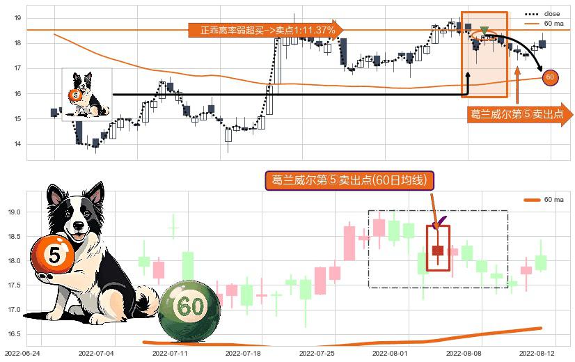 ⚀ 2022-08-03-日显现 葛兰威尔均线 60日均线 第⑤卖出点 上升趋势均值回复的短线回落信号,后市看跌,卖出信号