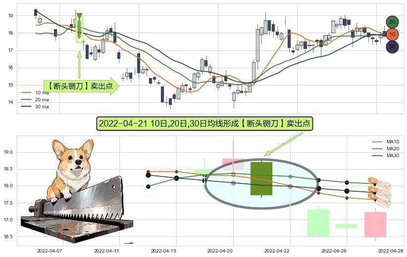 ⚀ 2022-04-21日显现 10日-20日-30日均线 【断头铡刀】卖出点 看空信号,后市看跌,卖出