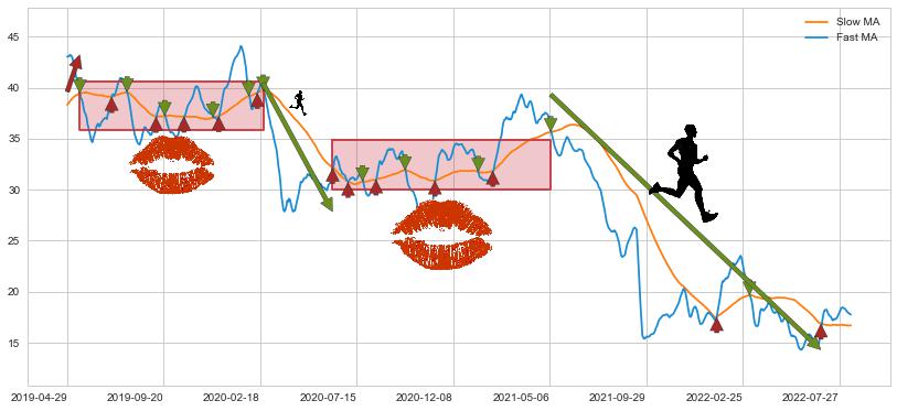 2021-05-07至2022-06-29 慢线与快线呈空头排列, 慢线与快线接触少,无缠绕