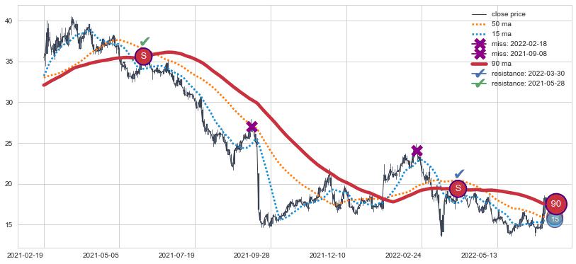 ⚂ 2022-07-28-日均线向上突破,2022-07-29-日重新下穿均线破位,均线阻力再次生效