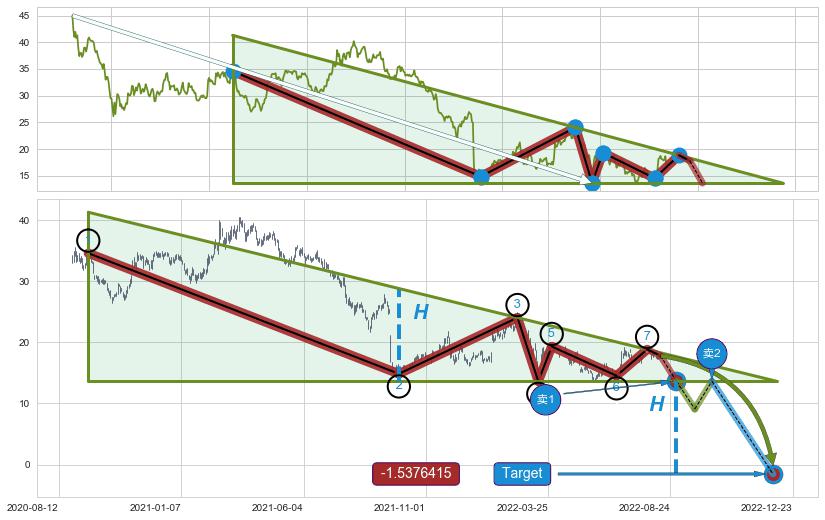 ➣ 最小中继整理跌幅→𝐇: 16.05 (𝐇旗杆的长度:旗杆起点→顶点)