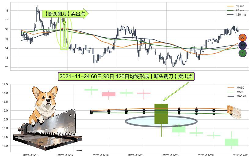 形态多维评估: ⚀ 2021-11-24日显现 60日-90日-120日均线 【断头铡刀】卖出点 看空信号,后市看跌,卖出