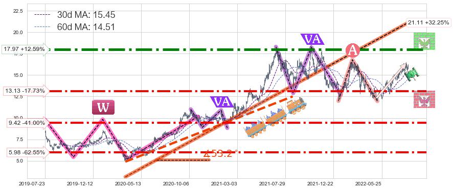 ♘ 阻力价格位17.97,可信任强度94.62%,距离最后交易2022-08-12形成的收盘价格15.96相差 +12.59%