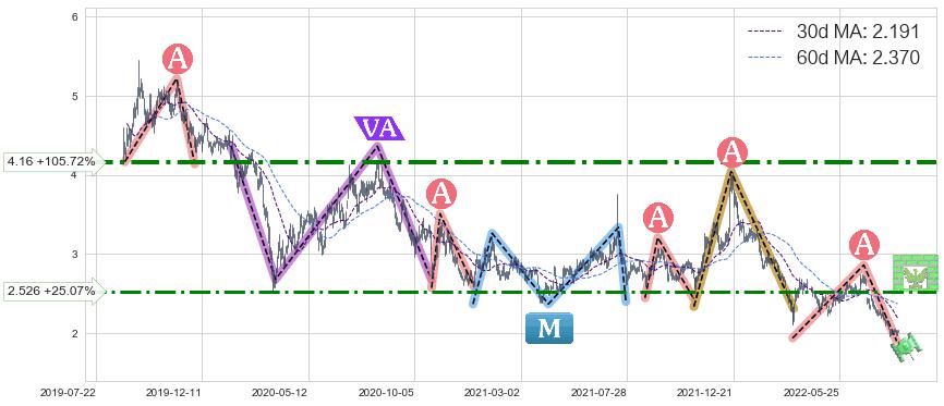 ♘ 阻力价格位4.16,可信任强度73.11%,距离最后交易2022-08-12形成的收盘价格2.020相差 +105.72%
