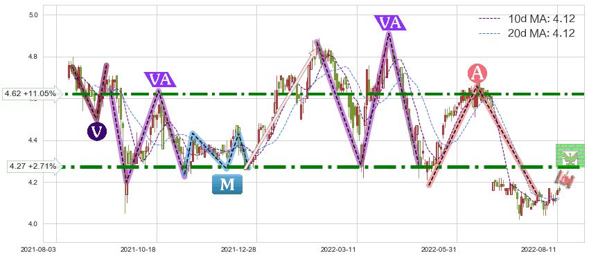 ➣ 【仅预测突破】最后价格:4.16与预测突破价格:4.10→【空间中等】后续最小【反转】第一目标价格→(2022-10-28: 3.366 )