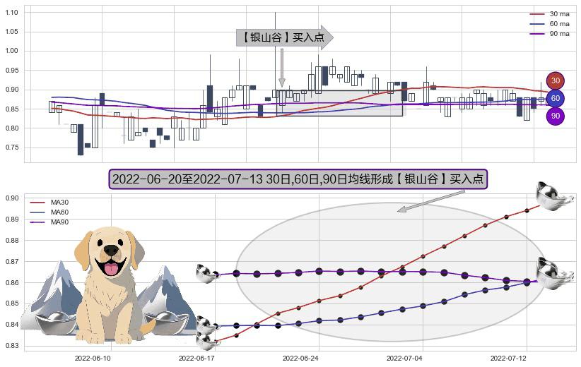 ⚀ 2022-06-21-日至2022-07-13-日显现 30日-60日-90日均线 【银山谷】买入点 看多信号,后市看涨,买入