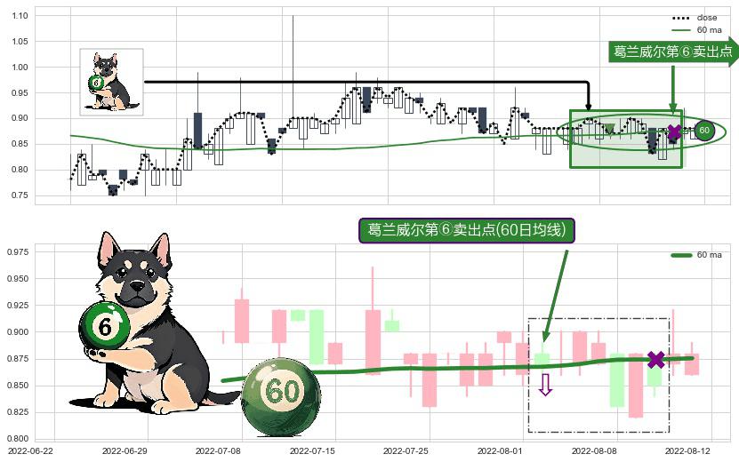 ⚀ 2022-08-02-日显现 葛兰威尔均线 60日均线 第⑥卖出点 走势反转见顶信号,后市看跌,卖出信号
