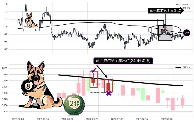 ⚀ 2022-07-04-日显现 葛兰威尔均线 240日均线 第⑧卖出点 下降趋势的中继信号,后市看跌,卖出信号