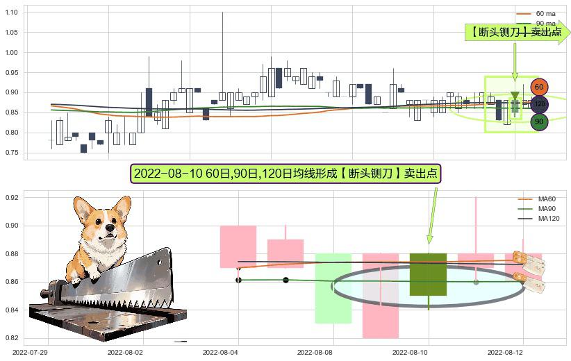 ⚀ 2022-08-10日显现 60日-90日-120日均线 【断头铡刀】卖出点 看空信号,后市看跌,卖出