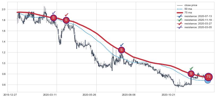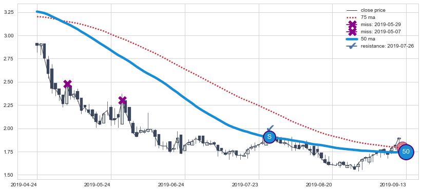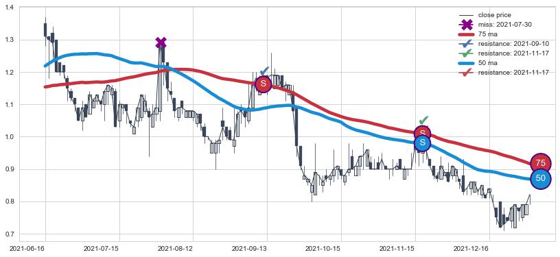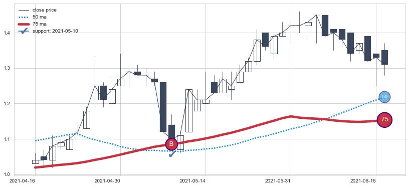 ⚃ 在破位点附近ma走势明显平稳迹象,稍后的走势中ma下垂迹象也出现,信号【可信度中等偏上】