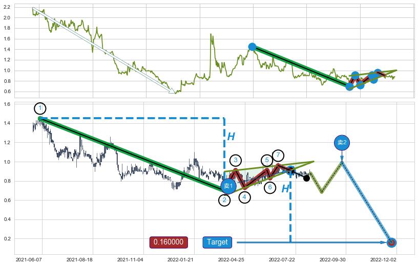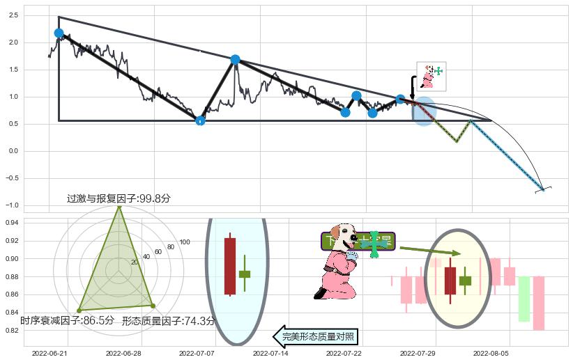 ➢ 【卖1】: 激进型 卖点→(2022-07-14: 0.9100 )形成突破升🚩楔型【整理】形态