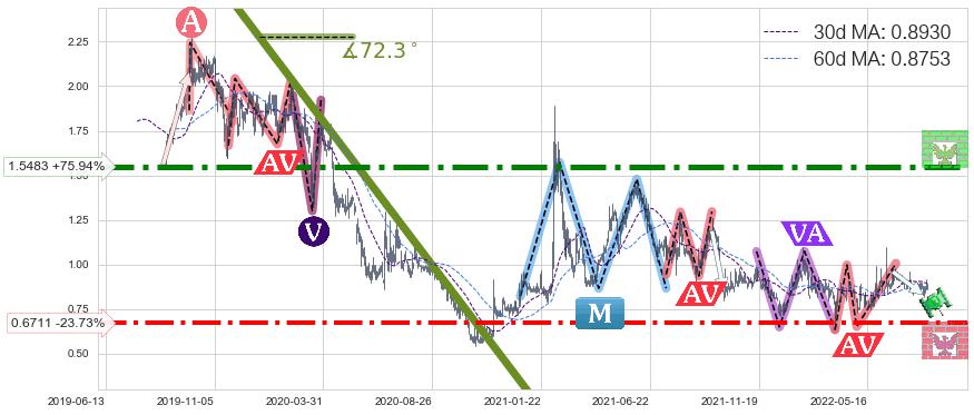 ♘ 支撑价格位0.6711,可信任强度80.53%,距离最后交易2022-08-12形成的收盘价格0.8800相差 -23.73%