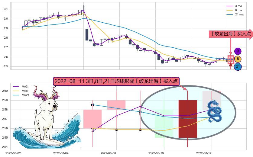 ⚀ 2022-08-11日显现 3日-8日-21日均线 【蛟龙出海】买入点 看多信号,后市看涨,买入