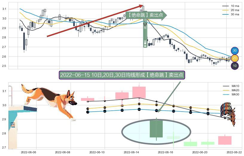⚀ 2022-06-15日显现 10日-20日-30日均线 【绝命跳】卖出点 看空信号,后市看跌,卖出
