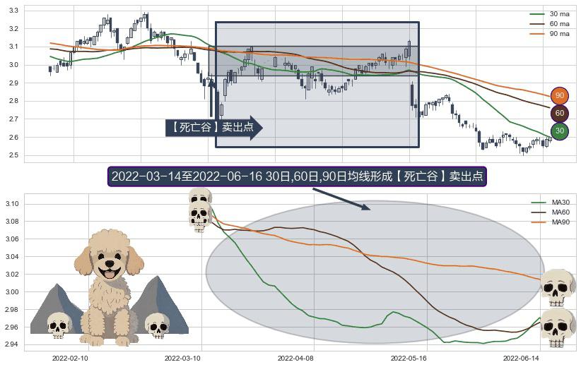 ⚀ 2022-03-15-日至2022-06-16-日显现 30日-60日-90日均线 【死亡谷】卖出点 看空信号,后市看跌,卖出