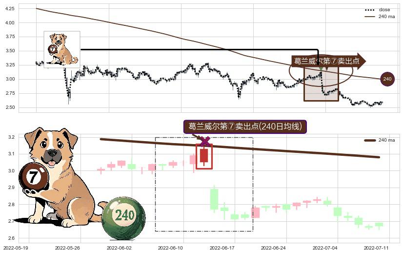 ⚀ 2022-06-14-日显现 葛兰威尔均线 240日均线 第⑦卖出点 下降趋势的中继信号,后市看跌,卖出信号