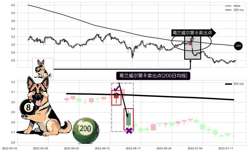 ⚀ 2022-06-15-日显现 葛兰威尔均线 200日均线 第⑧卖出点 下降趋势的中继信号,后市看跌,卖出信号