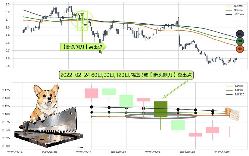 ⚀ 2022-02-24日显现 60日-90日-120日均线 【断头铡刀】卖出点 看空信号,后市看跌,卖出