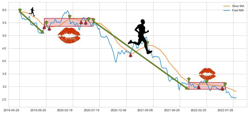2021-11-19至2022-06-15 慢线与快线多次接触,存在上下穿越,有缠绕