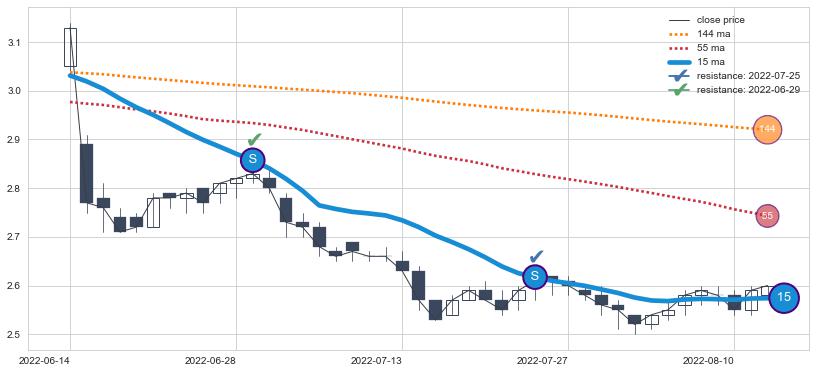 ⚂ 2022-06-13-日均线向上突破,2022-06-15-日重新下穿均线破位,均线阻力再次生效