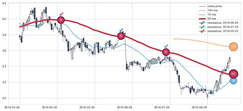 ⚁ MA60和MA90走势平行,且始终保持在短距离内,MA120始终在短中期均线上方,与短中期均线保持一定的距离,微微下行