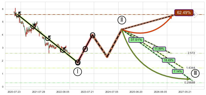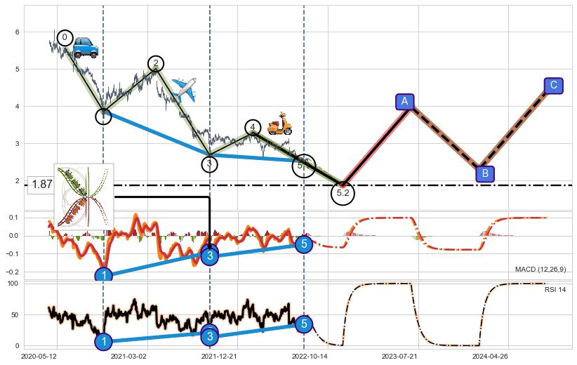 ➣ 5.1: 预测当前第5浪位置(2022-08-02, 2.520),仍然有下跌空间