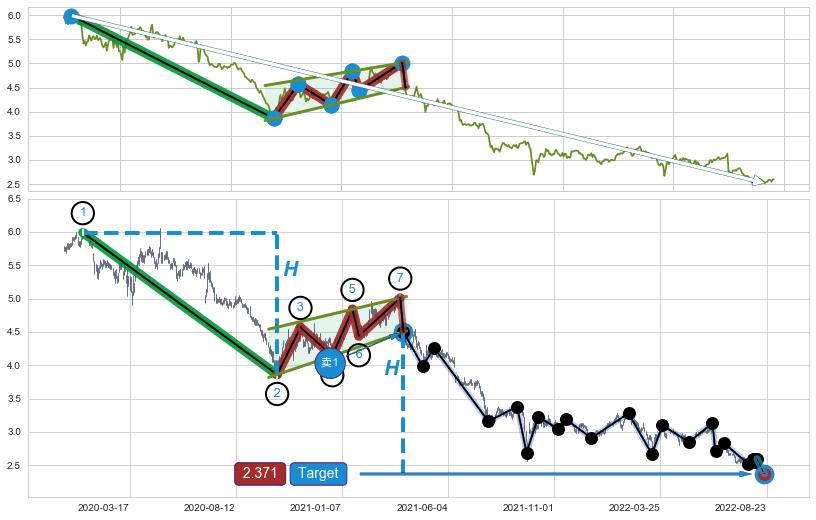 ➣ 最小中继整理跌幅→𝐇: 2.130 (𝐇旗杆的长度:旗杆起点→顶点)