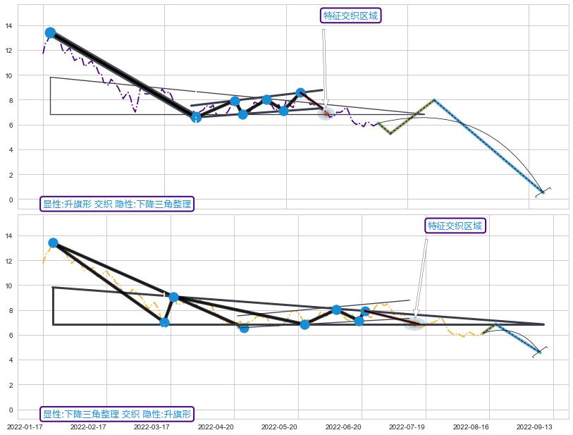 ➣ 【已确认突破】下降三角形整理 起点:2022-01-20,突破点:2022-07-15,形态共116交易日