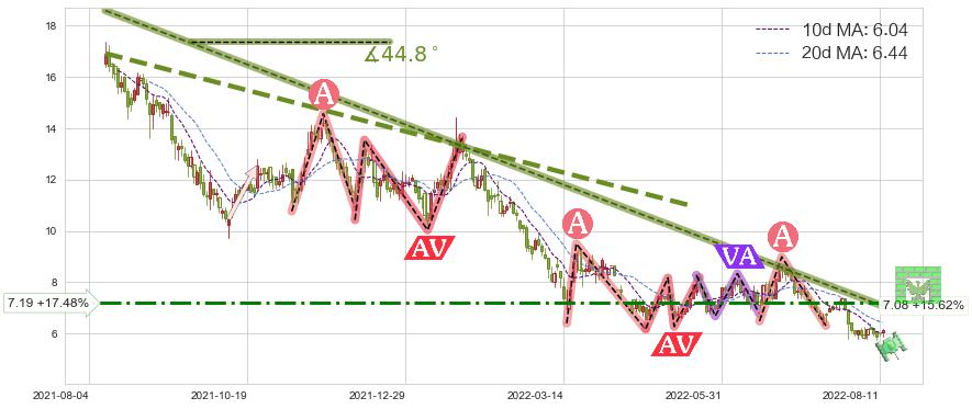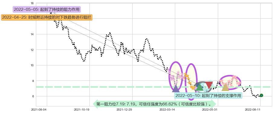 ♘ 阻力价格位7.19,可信任强度66.62%,距离最后交易2022-08-12形成的收盘价格6.12相差 +17.48%