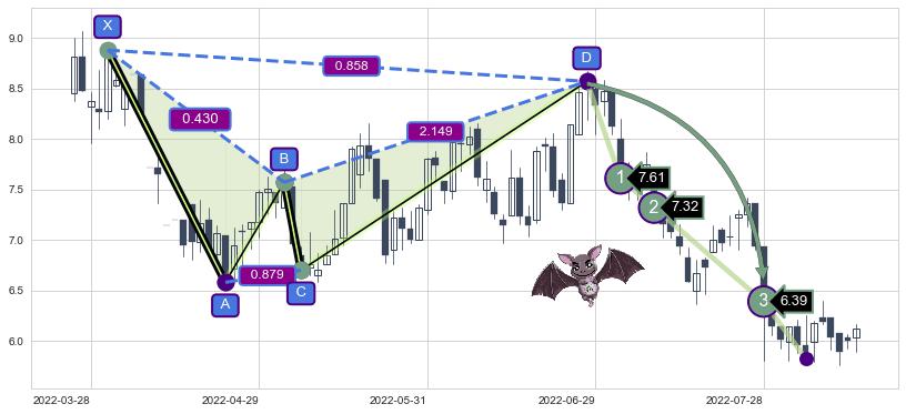 ➣ 已完成【蝙蝠】形态起点X: 2022-03-30, 终点D: 2022-06-28, 共58交易日