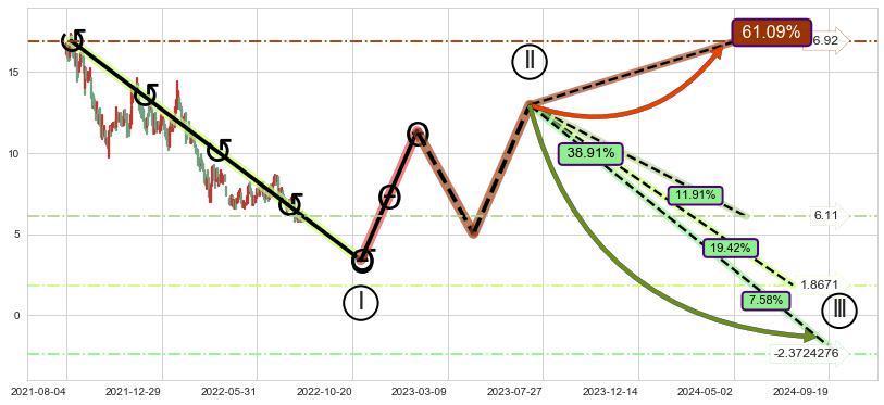 ➣ 大趋势循环浪继续向下概率38.91%