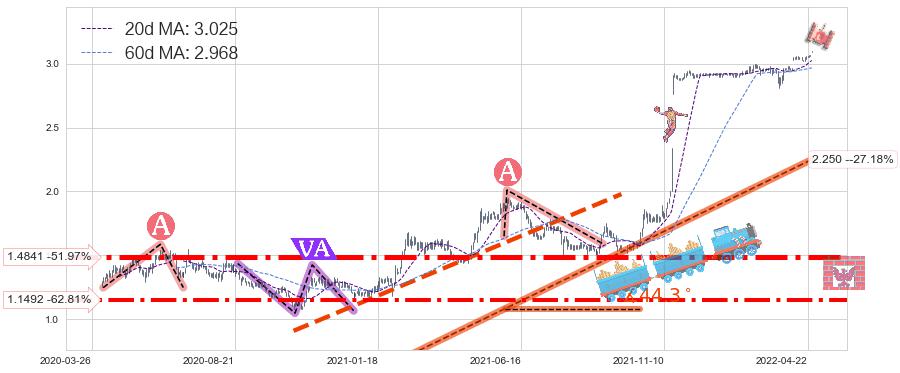 ♞ 20日均线:3.025,60日均线:2.968→ 快线>慢线