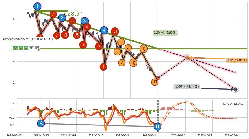 ➢ 预测:2022-10-27,【小幅反弹】稳定目前下跌趋势的前提下,预测价格:4.35
