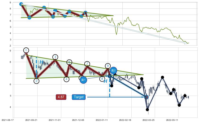 ➣ 【卖2】: 保守型 卖点→(2022-01-19: 6.67 )形成下降【对称】三角形整理突破后的【回抽确认】