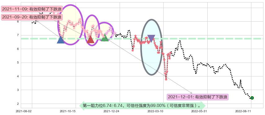 ♘ 阻力价格位6.74,可信任强度99.00%,距离最后交易2022-08-12形成的收盘价格2.430相差 +177.32%