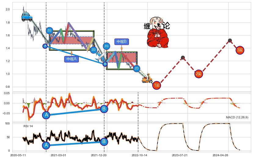 ➢ 【中枢B】:2021-12-16-2022-08-02,中枢由5笔构成,共150交易日, ZG=1.3300, ZD=1.1800